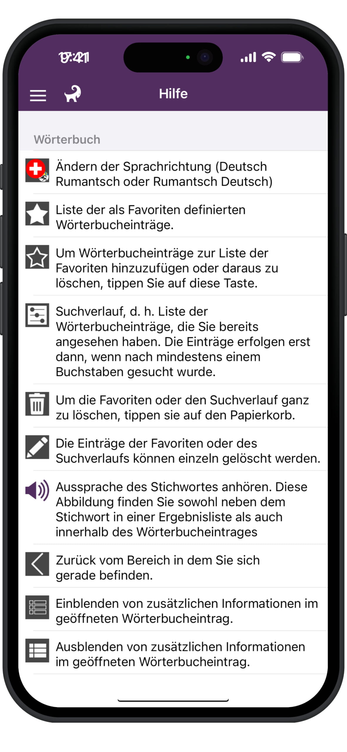 Unser einzigartiges, professionelles und zuverlässiges Wörterbuch für Rumantsch Sutsilvan funktioniert vollständig offline und bietet knapp 60.000 Stichwörter, Ausdrücke, Wendungen und Übersetzungen, ergänzt durch wertvolle Zusatzinformationen – perfekt für den Alltag, das Studium, den Beruf oder auf Reisen! Somit ist dieses Offline-Wörterbuch der ideale Begleiter für Sie als Übersetzer.